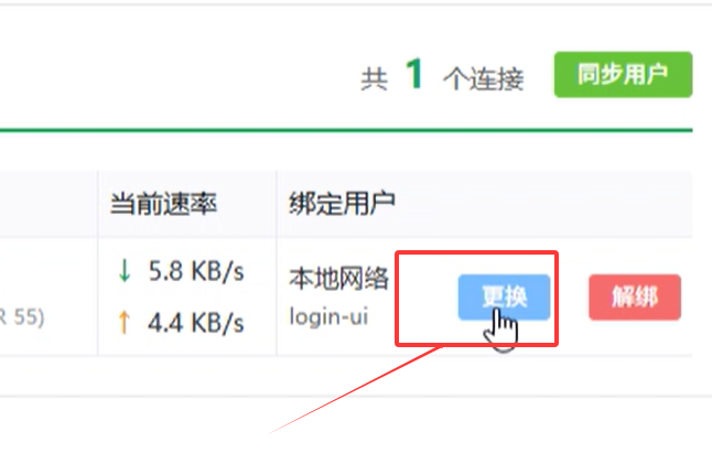 进入该页面后,点击右侧连接设备列表中,找到自己要指定线路的设备,然后点击“更换”按钮;